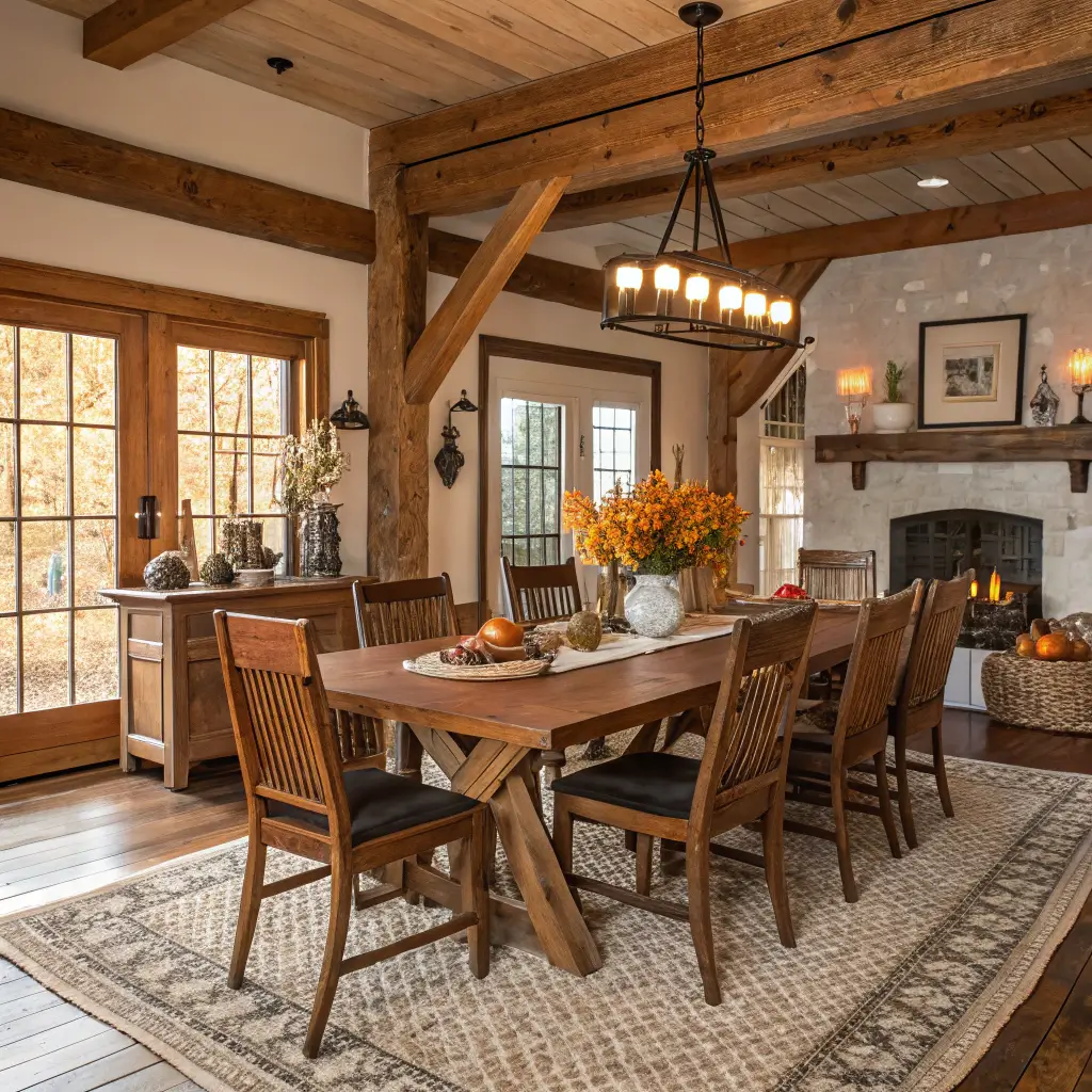 Remember visiting your grandparents’ house and feeling instantly at home? Rustic dining rooms capture that same warmth without the plastic-covered furniture.