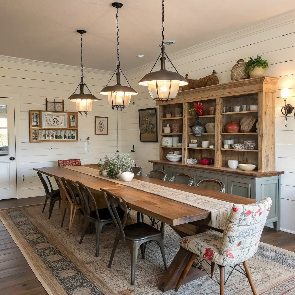Farmhouse style brings Chip and Joanna’s magic to your dining room without requiring a film crew. This style works because it combines comfort with deliberate design choices.