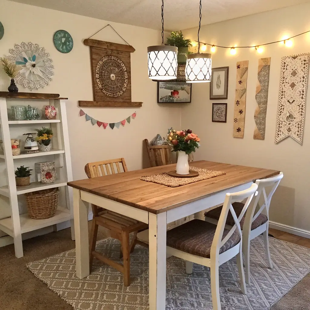 Layered textiles and global influences define boho dining rooms. I started with a Moroccan rug I found at an estate sale, added some macramé wall hangings, and suddenly my dining room looked like it belonged in a design magazine. Who knew organized chaos could look so intentional?