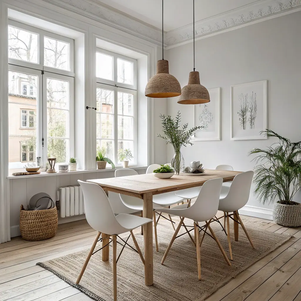 Light woods and white spaces define Scandinavian dining rooms. My birch dining table looks expensive but came from everyone’s favorite Swedish furniture maze. The trick? Keeping everything else simple so the wood grain becomes art.