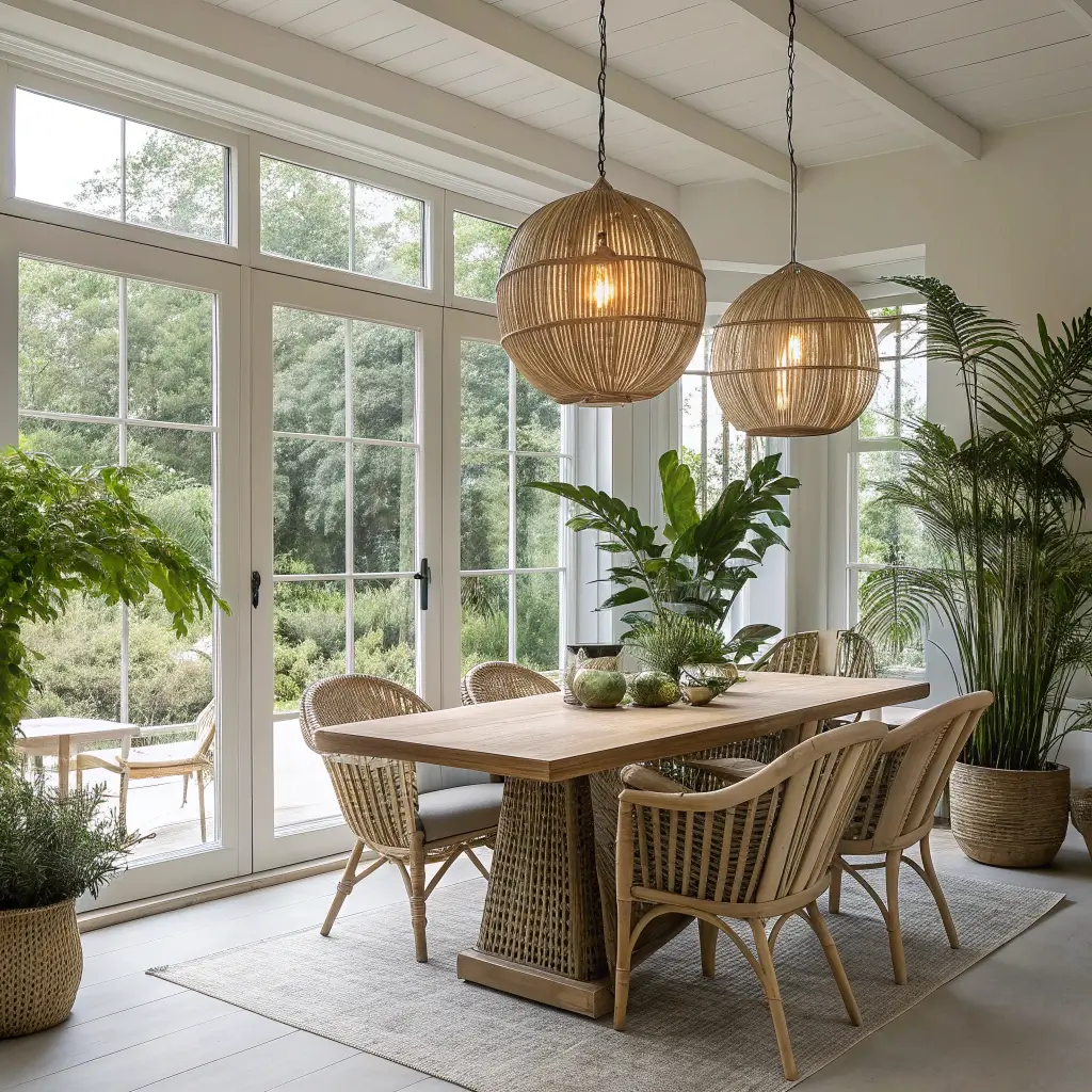 Bringing outdoor elements inside creates this amazing, organic feel that makes dining rooms feel less formal and more livable. Natural materials and nature-inspired designs blur the lines between inside and outside.