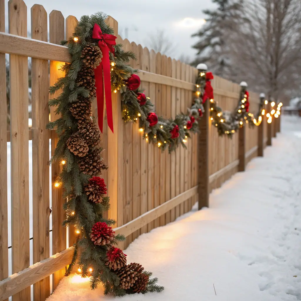 Pinecone garlands transform boring fence lines into festive focal points. And before you ask – yes, you can totally use store-bought pinecones if your area doesn’t have pine trees. No judgment here!
