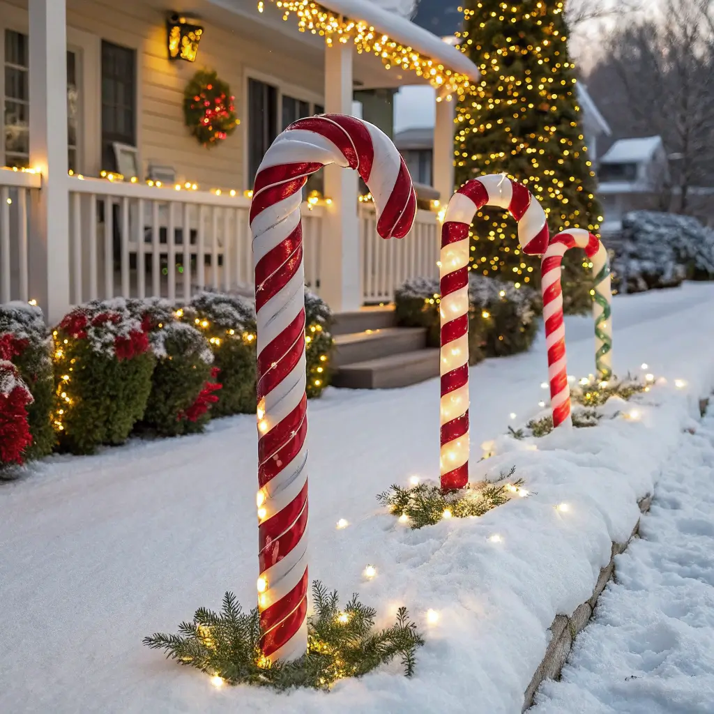 I make mine using PVC pipe, which sounds complicated but honestly isn’t. Cut the pipe into 2-foot sections, bend them into candy cane shapes using a heat gun (or really hot water works too), then wrap with red and white tape or paint stripes. The result? Professional-looking decorations that cost about $2 each.