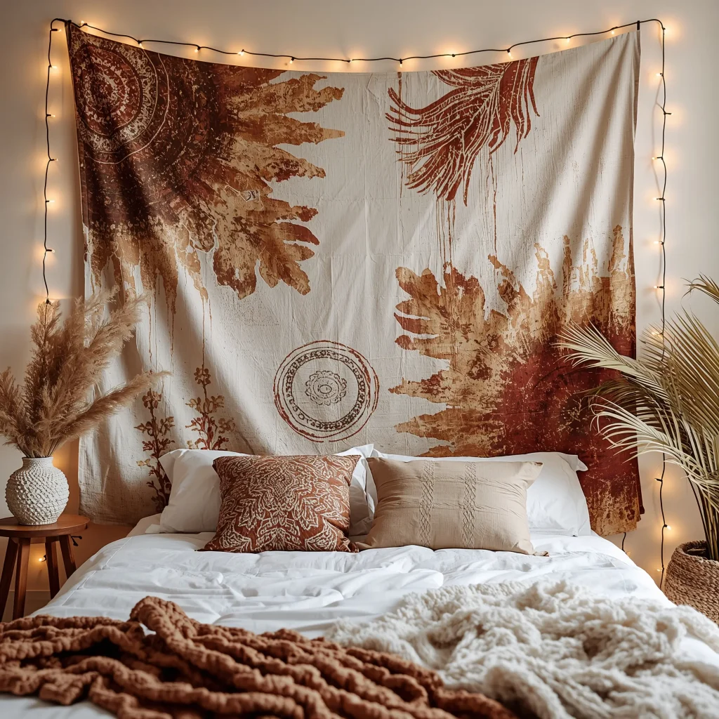 Forget expensive wallpaper – a DIY fabric tapestry gives you the same impact for a fraction of the cost and zero commitment. Found a gorgeous fabric at the thrift store? Boom, that’s wall art now. Inherited your grandma’s vintage scarves? Gallery wall material right there.