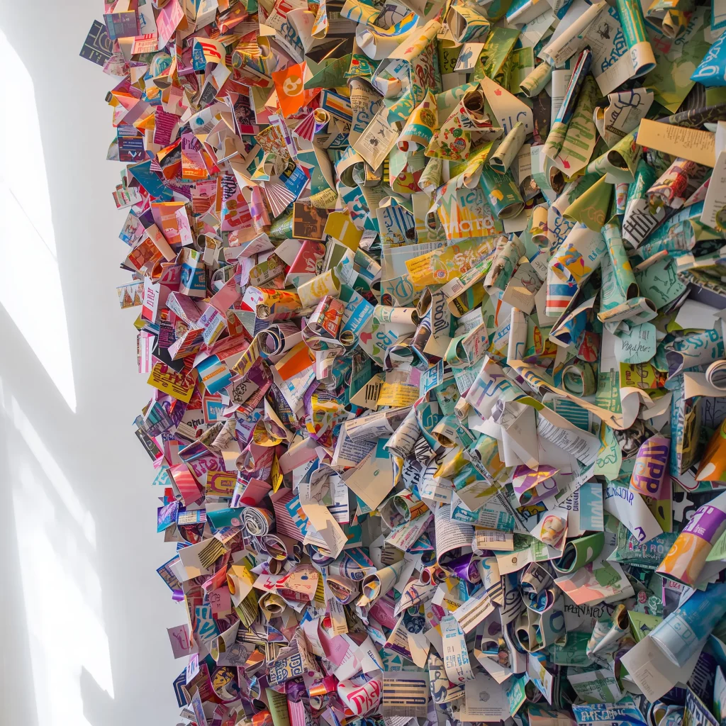 Choose your approach – color-blocked sections create a modern look, while mixing everything creates controlled chaos that somehow works. I spent one rainy weekend creating an ombre wave effect using only blue and green pages from National Geographic magazines. Three years later, it’s still my favorite wall in the house.
