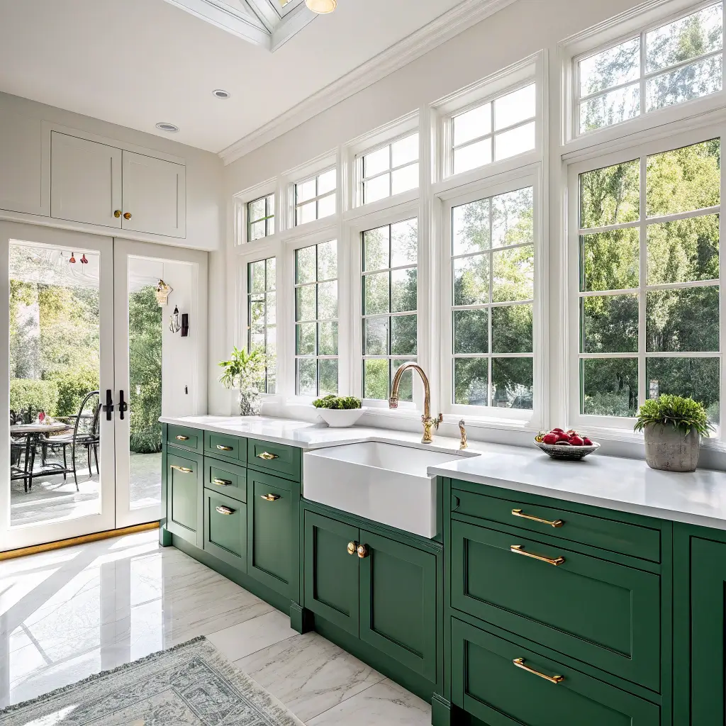 I remember walking into a friend’s sun-drenched kitchen with emerald cabinets for the first time—the morning light made them look almost jade-like, while the afternoon sun brought out deeper, richer tones. It was like having two different kitchens depending on the time of day!