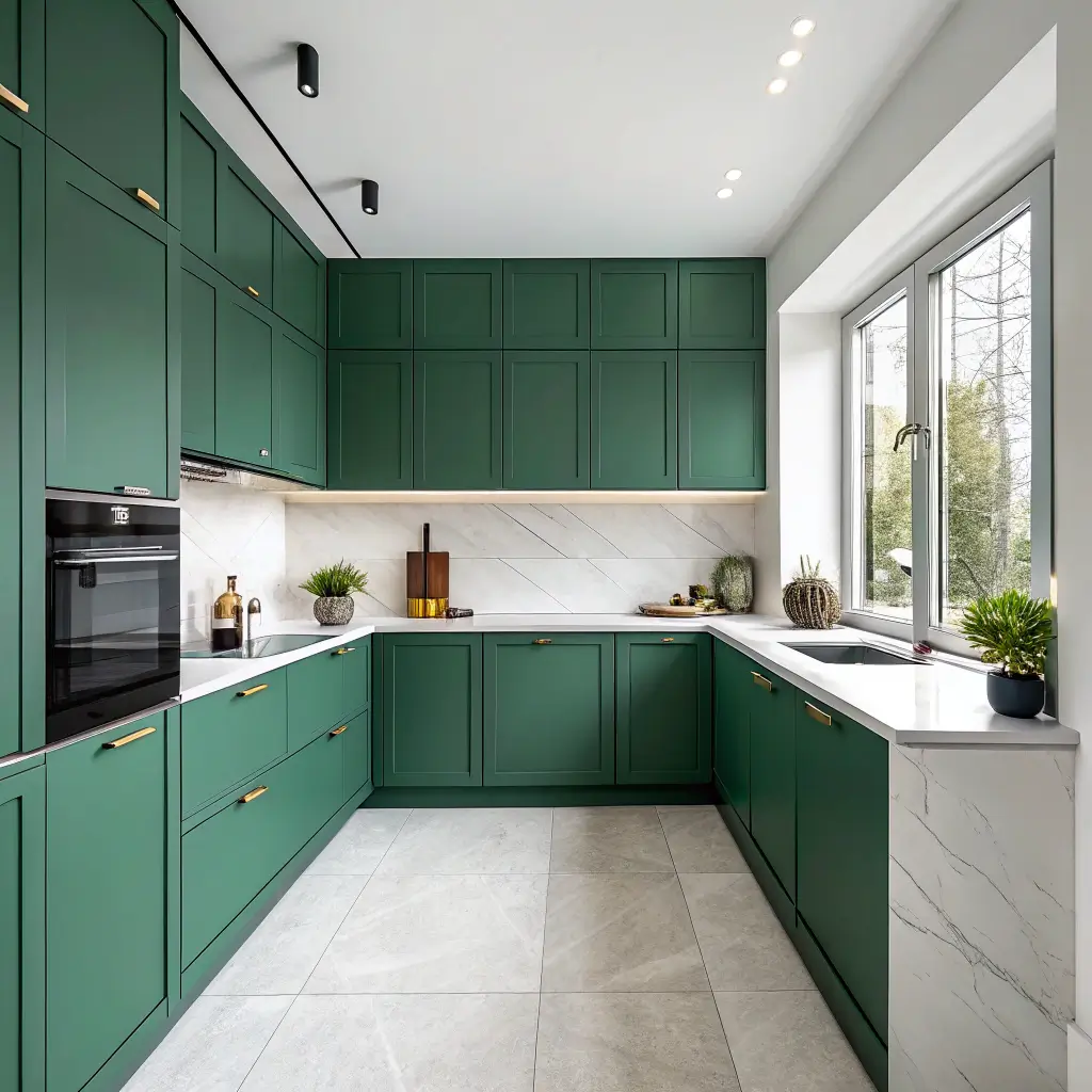 Modern Emerald Green Kitchen with White Countertops