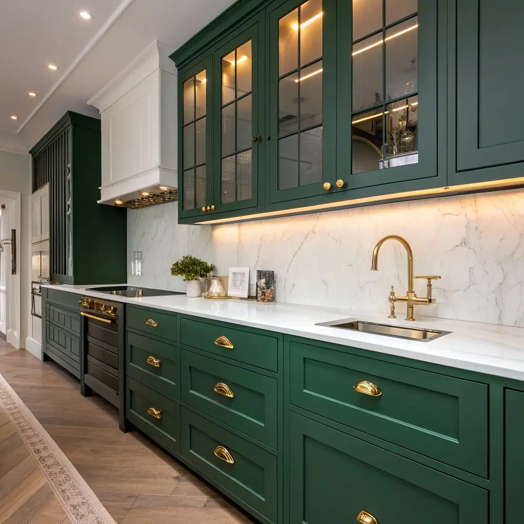 Emerald Green Cabinets with Gold Accents