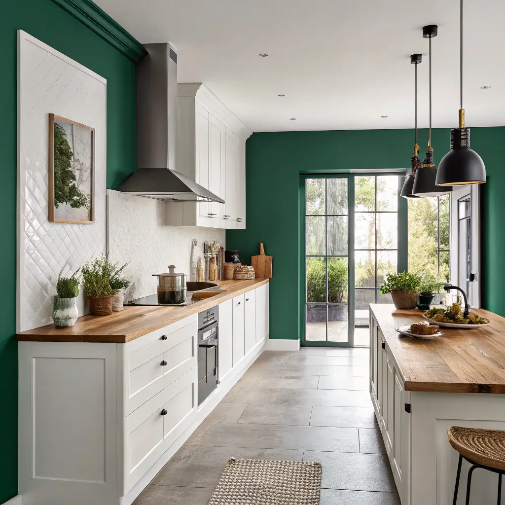 Emerald Green Statement Walls in Kitchen