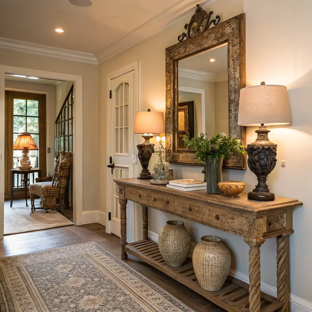 A vintage console table brings instant character and functionality. Hunt thrift stores or estate sales for unique pieces with history. I scored an amazing Art Deco piece for $50 that everyone assumes cost thousands.