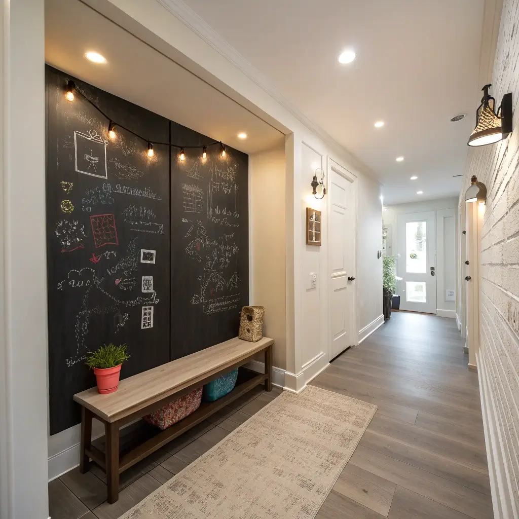 Want something fun and functional? A chalkboard wall becomes your family’s communication hub. Leave notes, shopping lists, or motivational quotes. Kids love drawing on walls legally—it’s basically sanctioned graffiti.