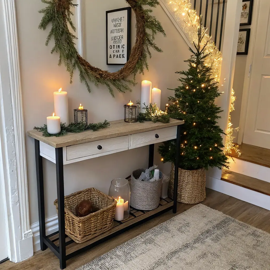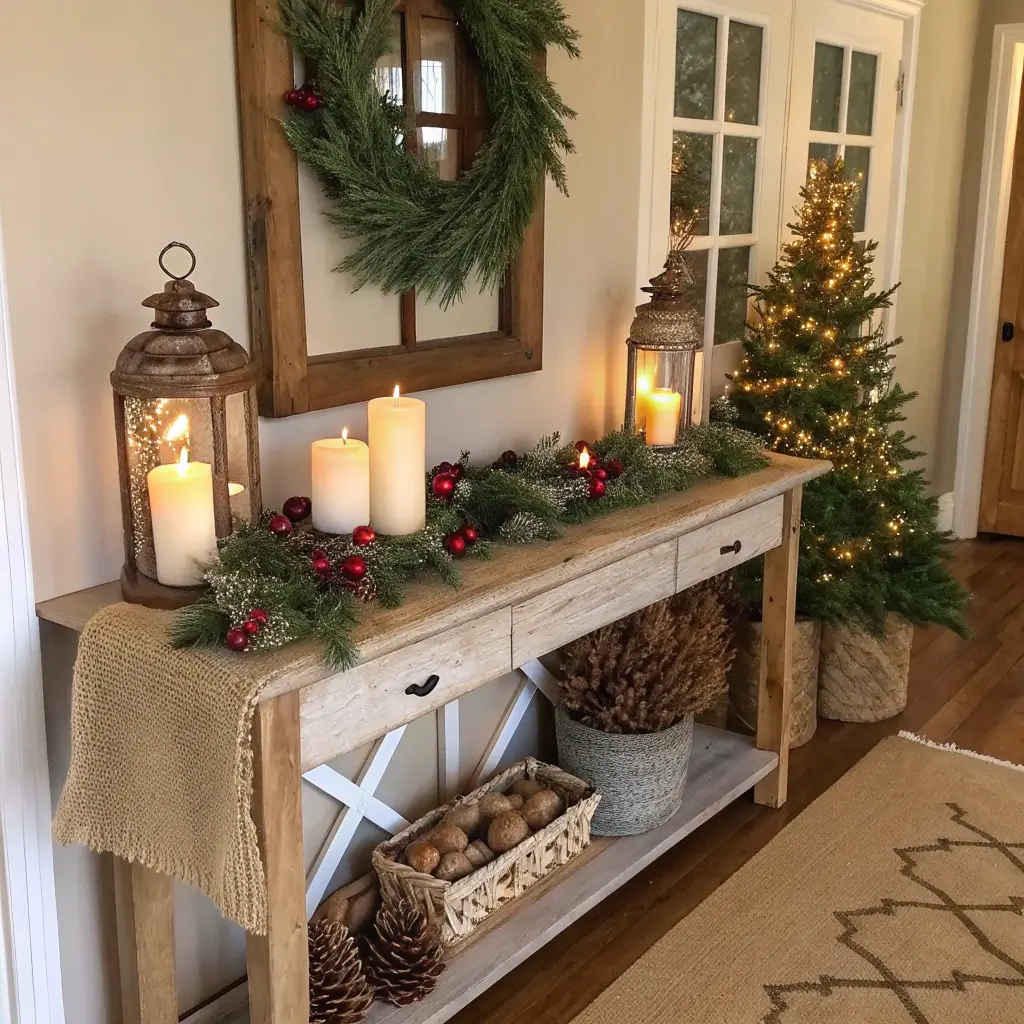 Cozy Candlelit Winter Entry Table Display