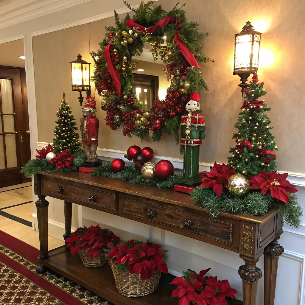 Traditional Red and Green Christmas Entry Table