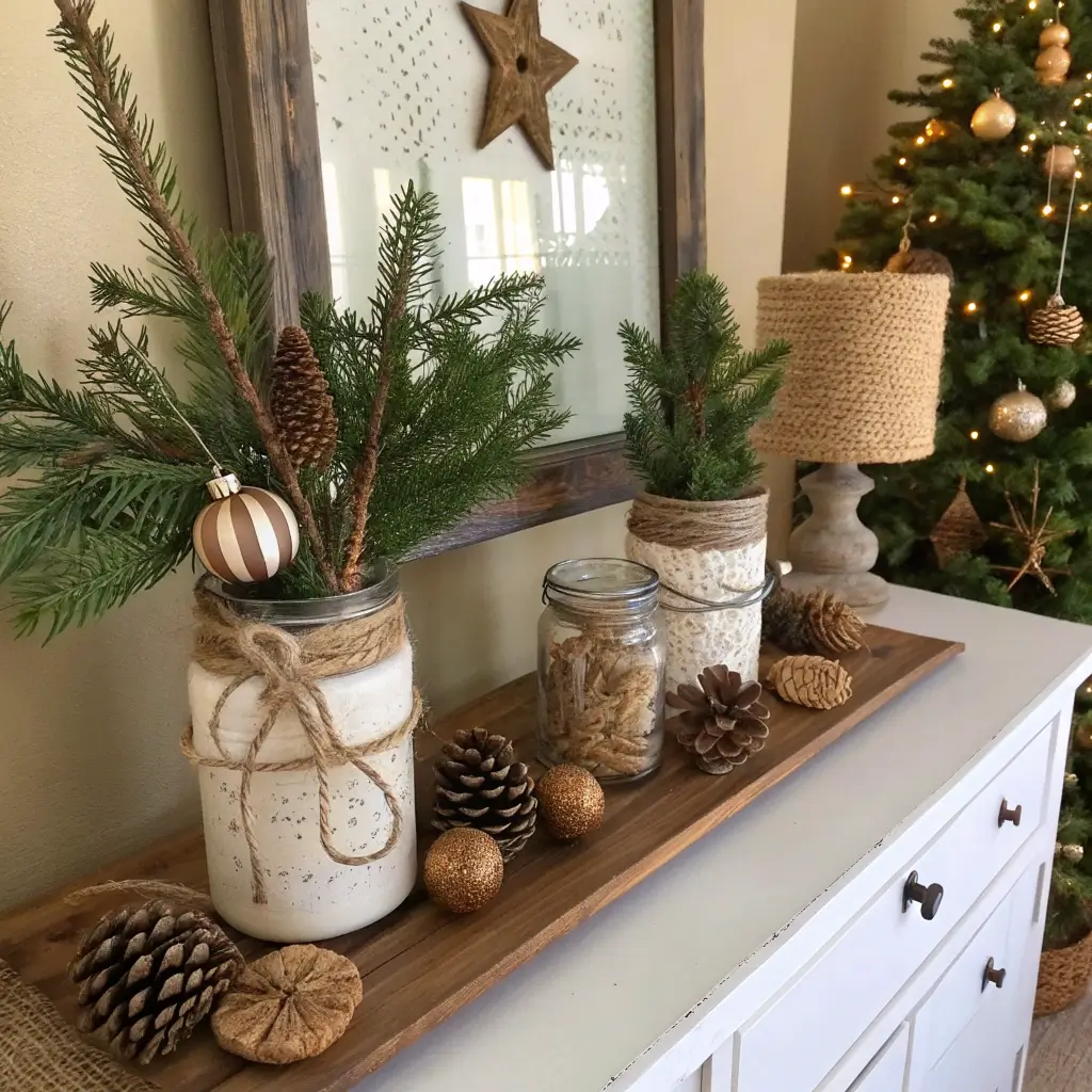 The beauty of farmhouse style? You can literally find half this stuff in your garage or at thrift stores. Last year, I spray-painted some old mason jars with that frosted glass spray, stuck some fake snow and battery lights inside, and people thought I bought them from some fancy boutique.