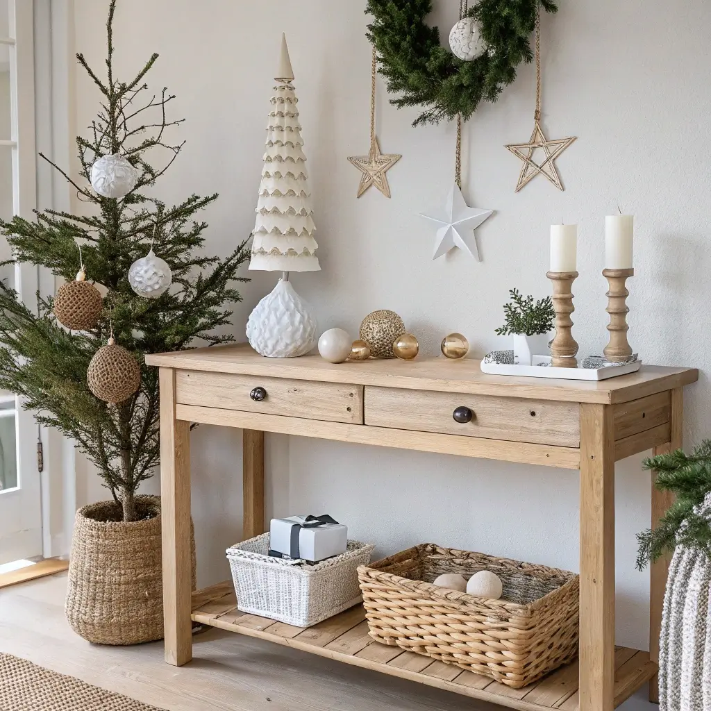 Scandinavian Inspired Neutral Christmas Entry Table