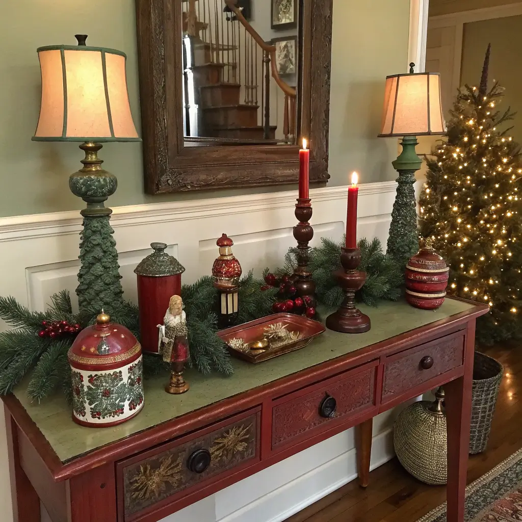 Vintage-Inspired Holiday Entry Table Vignette