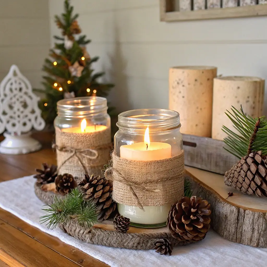 Old sweaters become pillow covers or tree skirts with minimal sewing. That hole in the elbow? Nobody sees it when it’s wrapped around your tree base. Mason jars you already have? Wrap them with twine, add a tea light, instant ambiance.