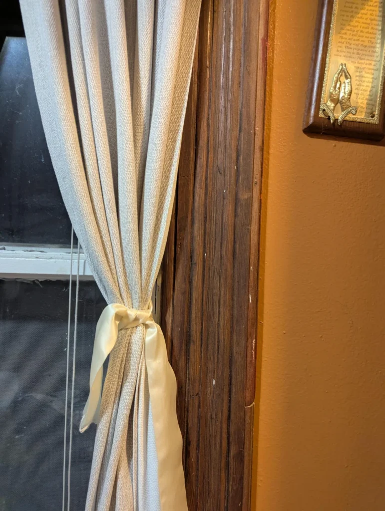 The best part? The curtains are tied back with simple fabric ties, so you can still enjoy the view and let plenty of natural light in during the day. It’s functional and beautiful, which is the whole point.