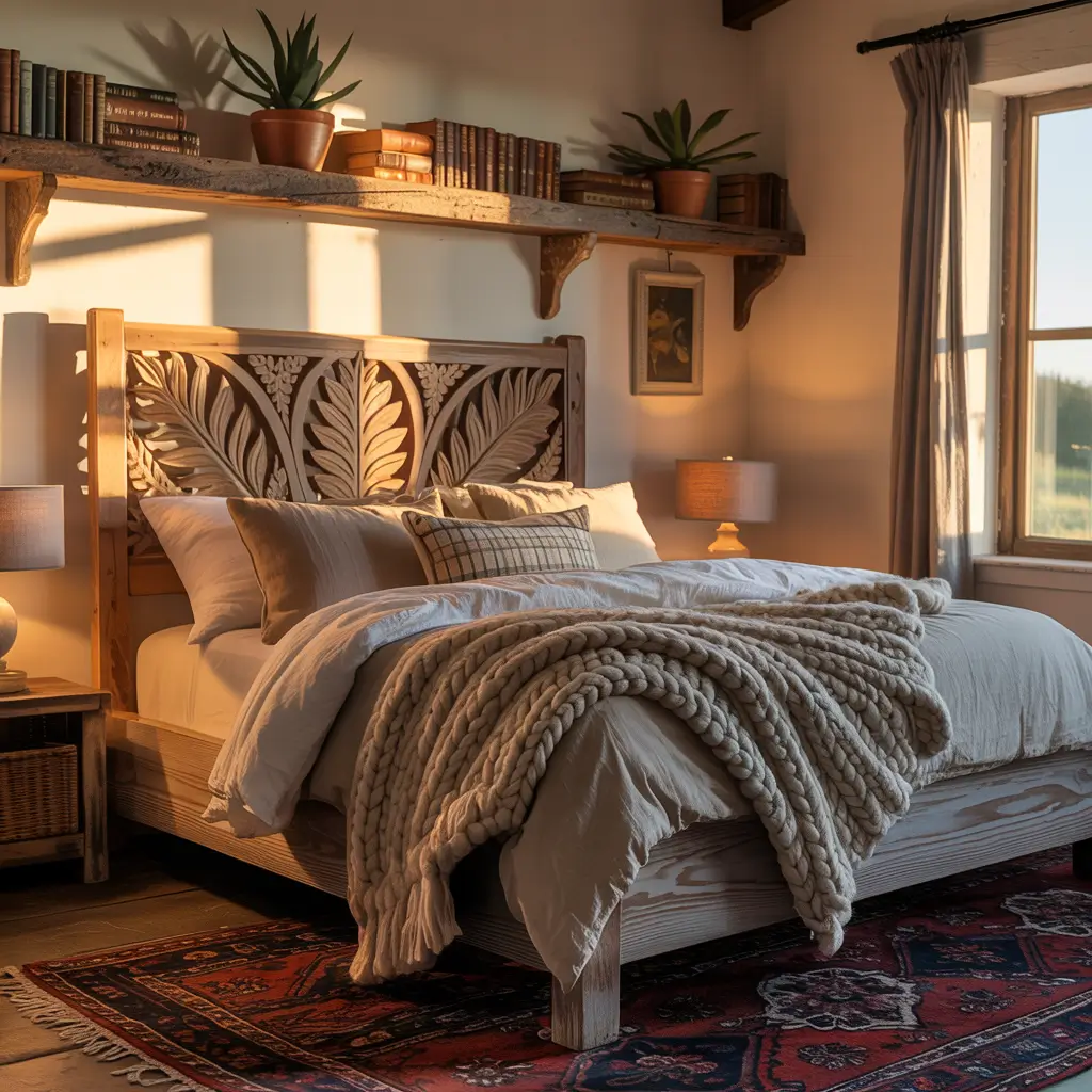 Layer in soft textiles like vintage quilts, lace curtains, or embroidered pillows. But here’s the key: balance is everything. Too many ruffles and florals, and you’ll feel like you’re sleeping in your grandma’s guest room (no offense, grandma).