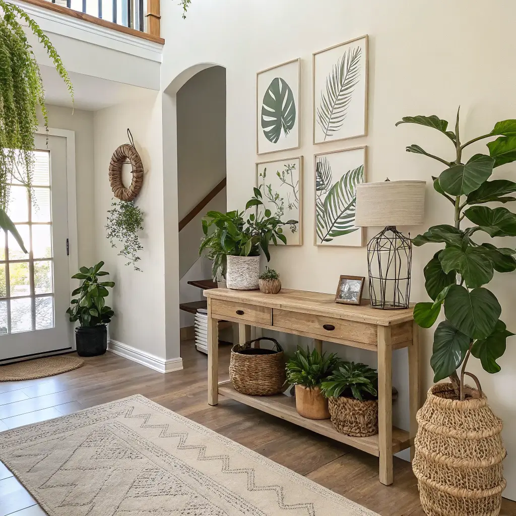 Plants breathe life into entryways – literally and figuratively. After adding a fiddle leaf fig to my foyer, the whole space feels fresher and more welcoming. Living greenery creates an instant connection to nature that artificial plants can’t replicate.