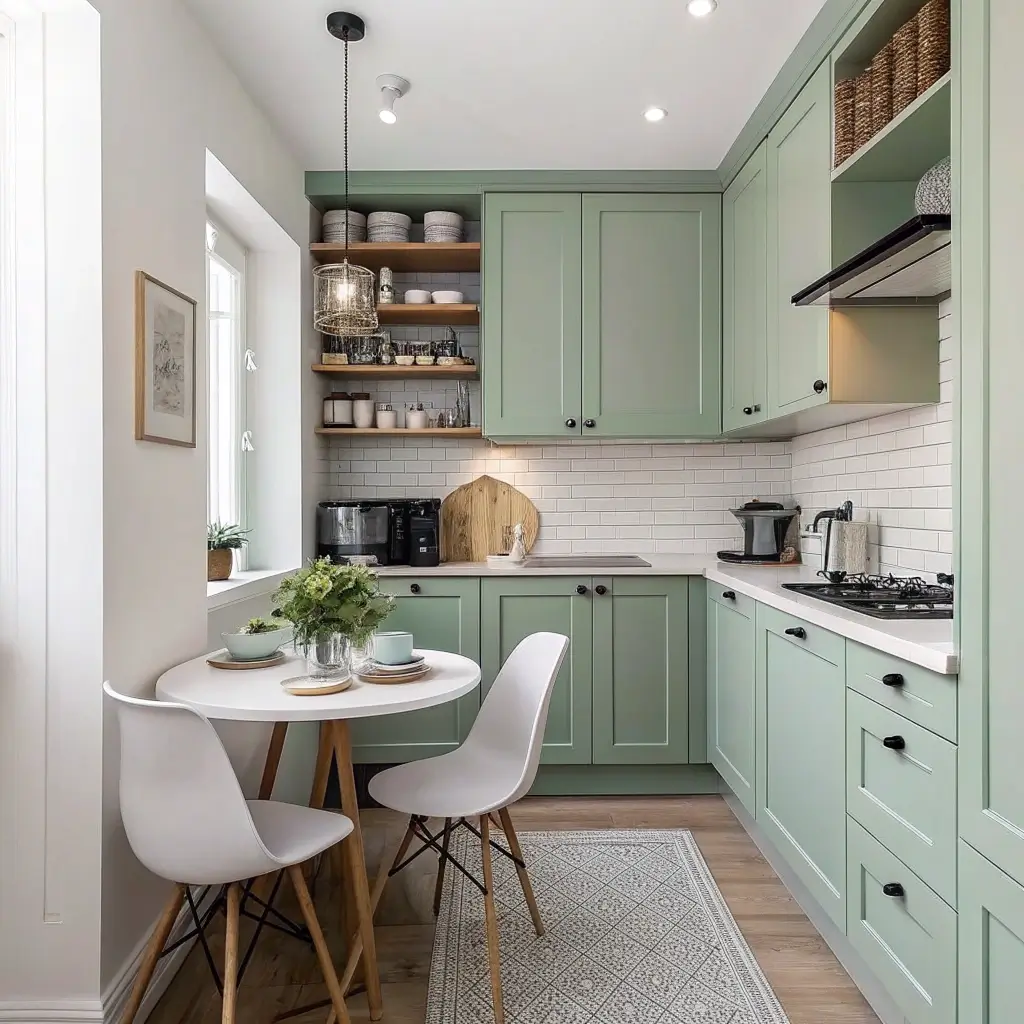 Small Kitchen Ideas in Green and White
