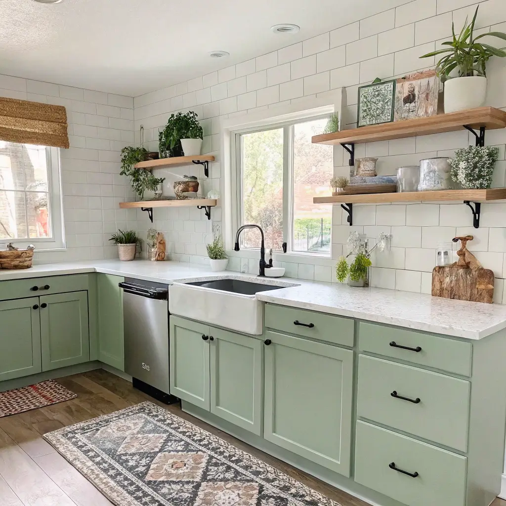 The payoff? Cooking becomes meditation. Cleaning takes five minutes. And that green and white palette stays crisp and calming no matter what chaos the day brings.