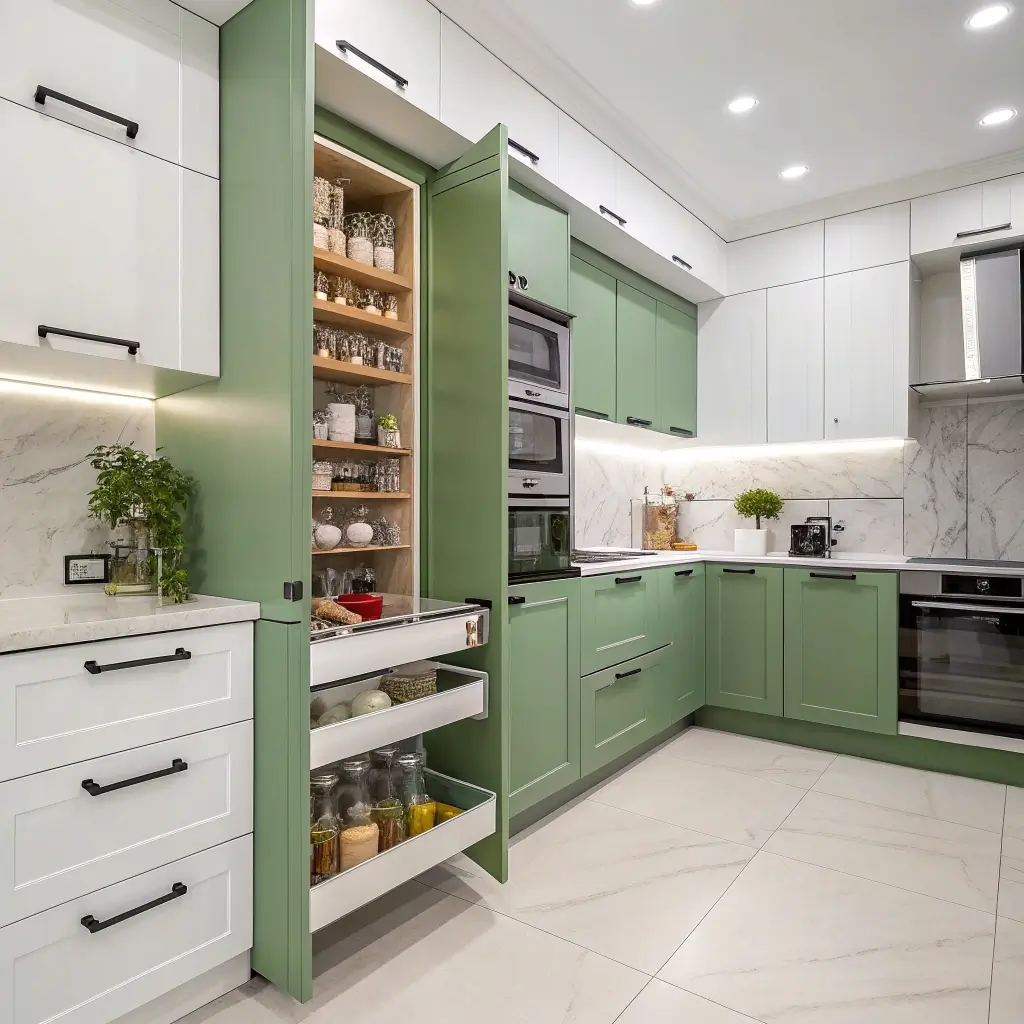 Chic Green and White Kitchen Storage Solutions