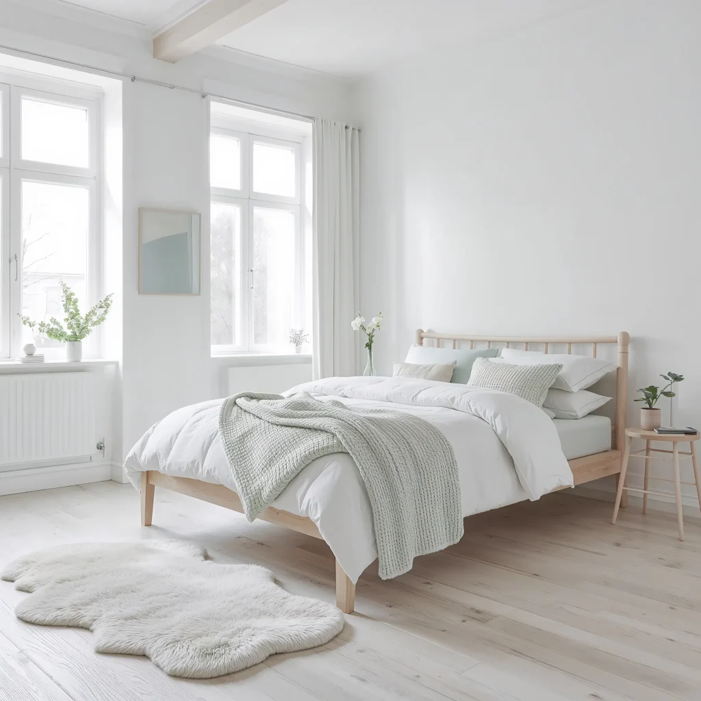 I helped my sister design her bedroom this way, and the transformation was incredible. We painted the walls in a soft sage – nothing too saturated – and kept everything else super neutral. Cream bedding, light wood floors, maybe one piece of black metal furniture for contrast. That’s it. That’s the whole vibe.