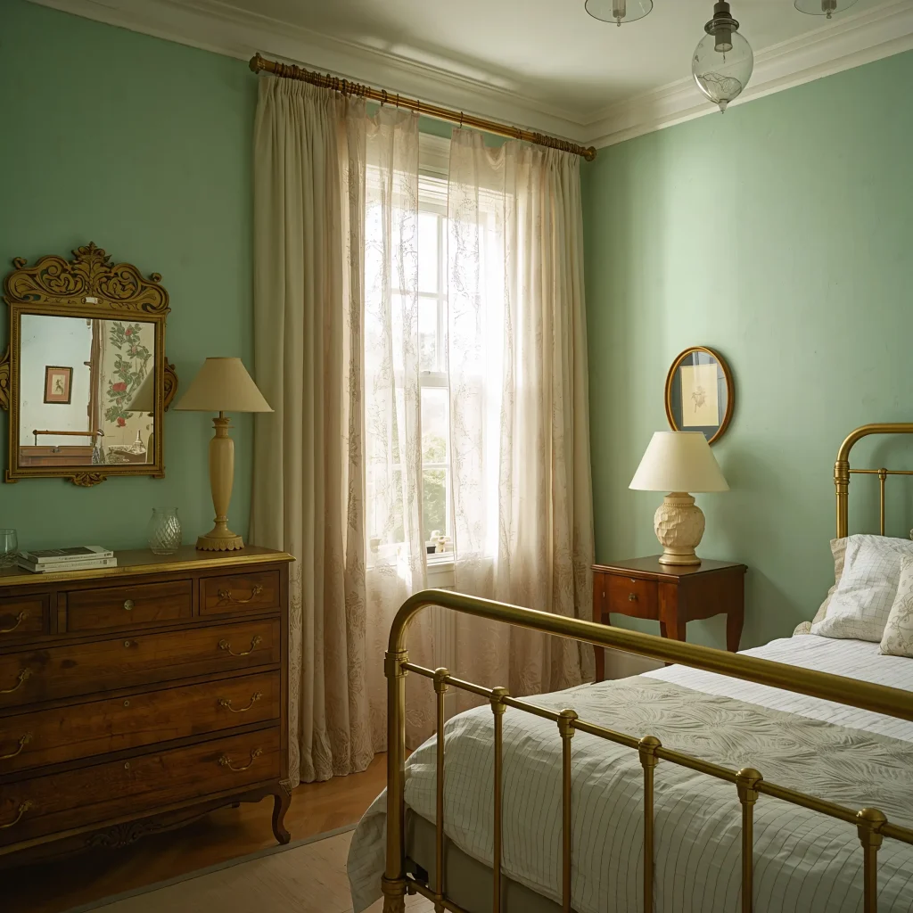 Channeling your inner Wes Anderson? The pastel green vintage bedroom delivers all the whimsy without the twee overload. We’re talking mint, pistachio, or seafoam paired with actual vintage pieces or really good reproductions.