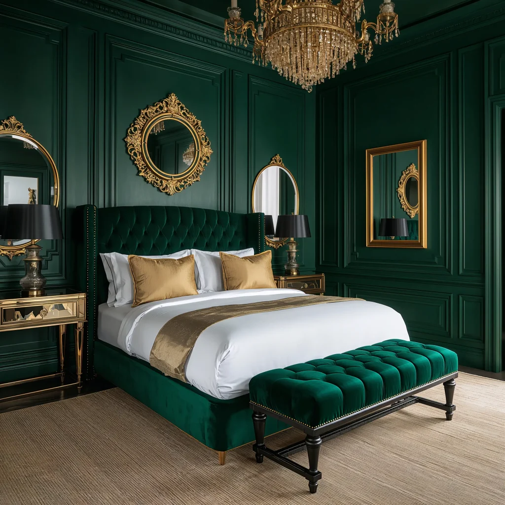 Want to feel rich even if your bank account says otherwise? The green and gold combination creates instant luxury. Deep greens paired with gold accents give major hotel suite vibes, and I’m here for it.