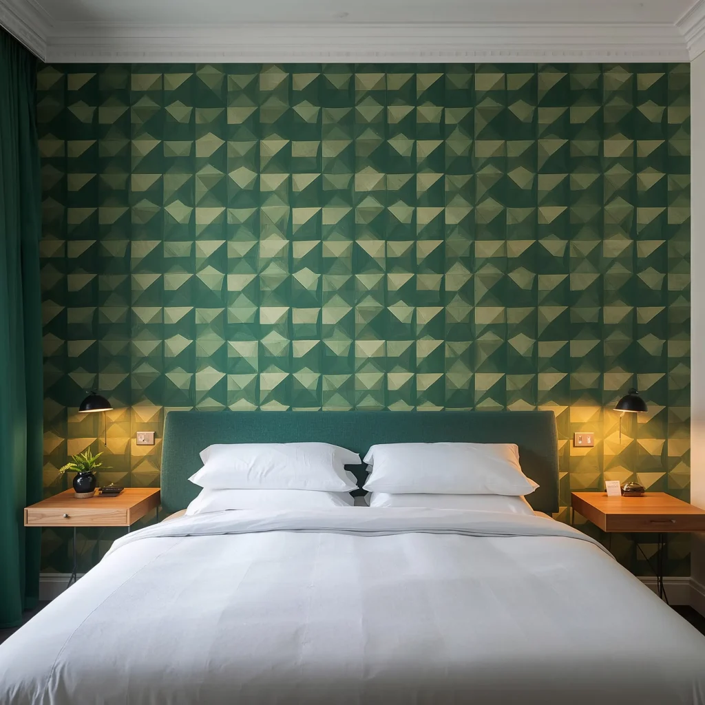 Geometric wallpaper in green shades brings pattern and color simultaneously, making it perfect for commitment-phobes who want impact. Whether you go art deco, mid-century modern, or contemporary geometric, green patterns add energy without overwhelming.