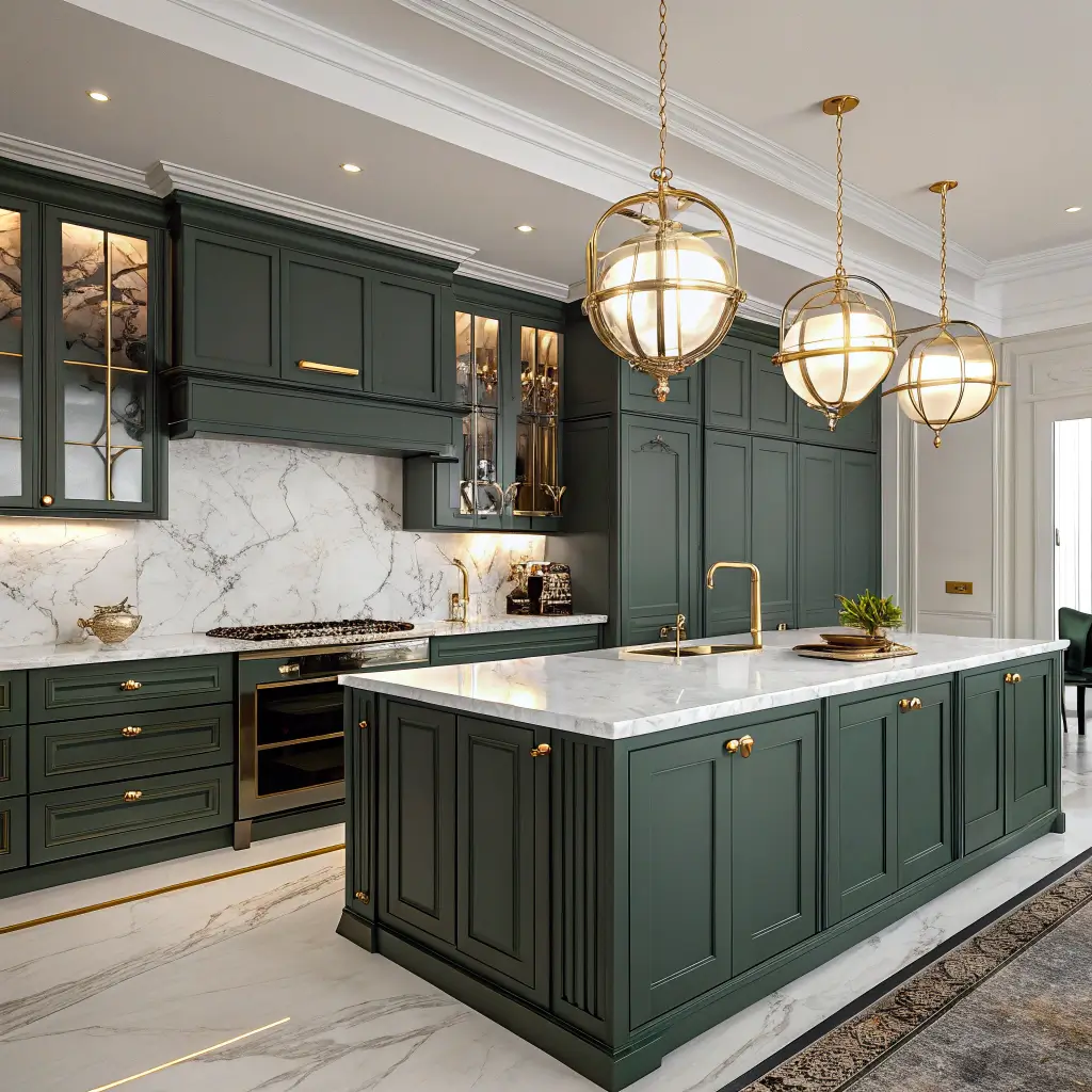 Dark Green Cabinets with Gold Handles