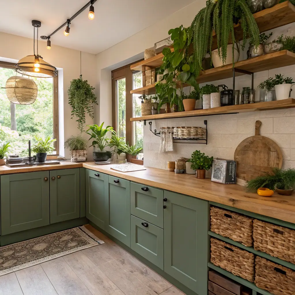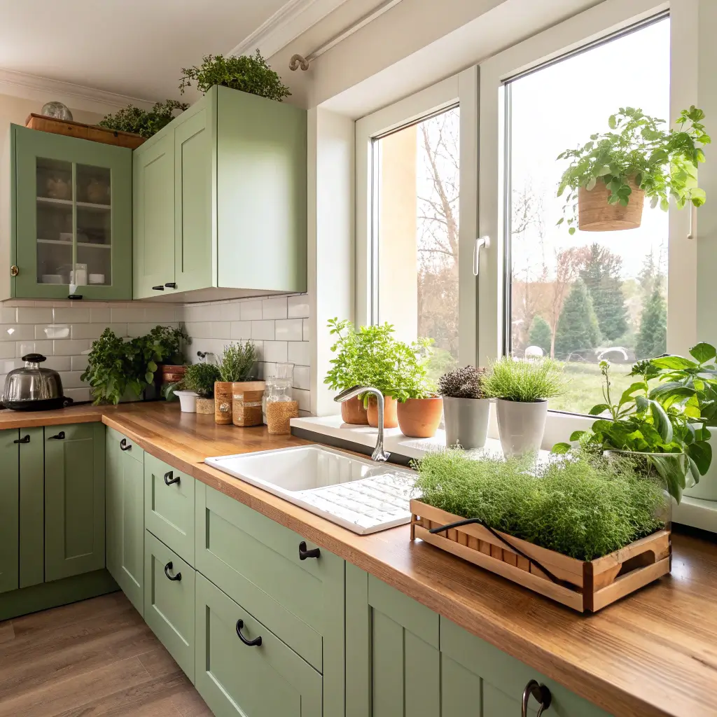 Green Kitchen with Indoor Herb Garden