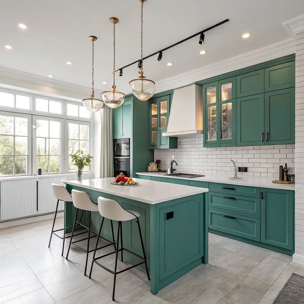 What makes teal-green so perfect for modern kitchens? It plays beautifully with both warm and cool tones. Pair it with copper for warmth or stainless steel for that sleek, professional look. Either way, you’re winning.
