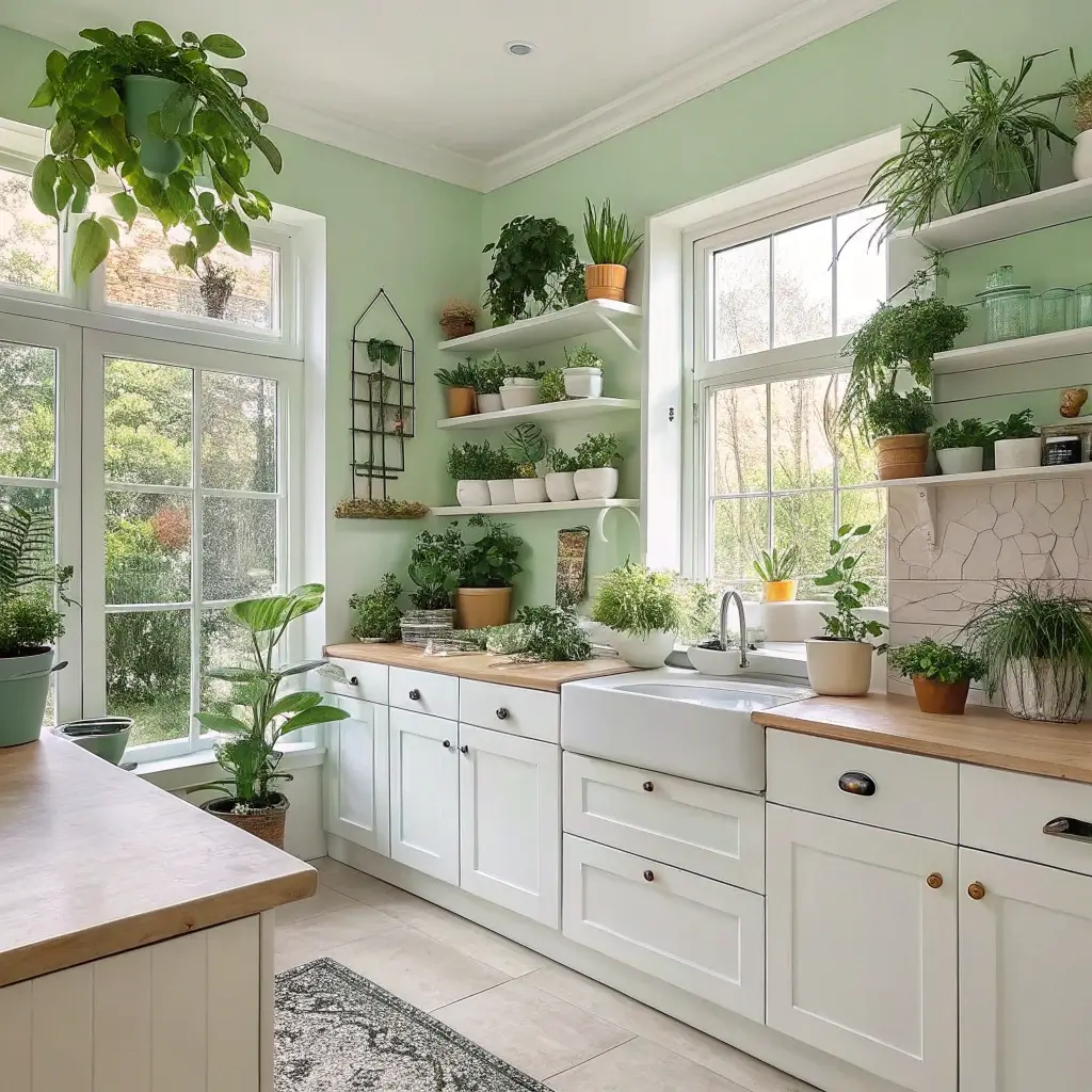 Light Green Walls with Indoor Plants