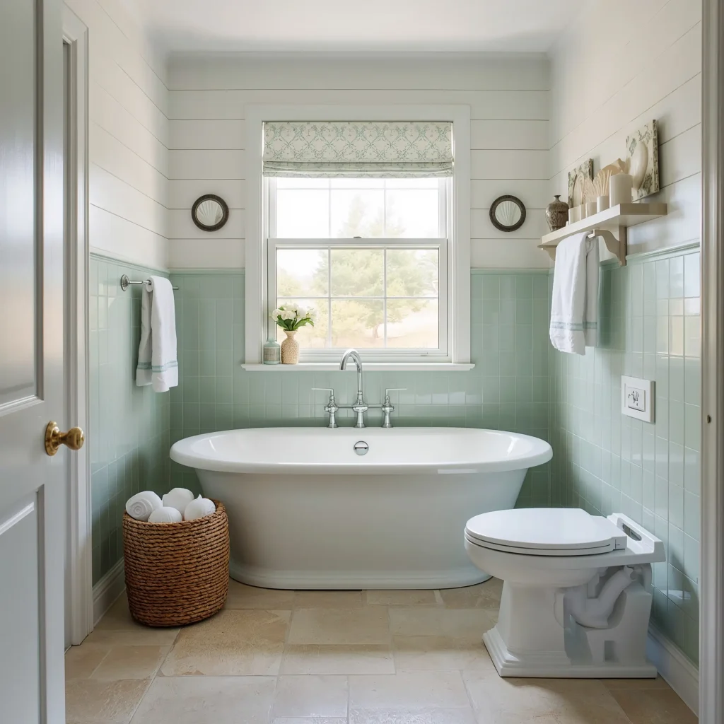 Seafoam Green Coastal Tile Bathroom