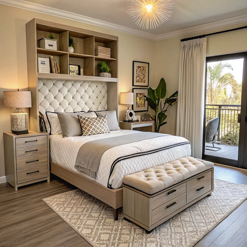 Vertical space is your secret weapon. Mount floating nightstands to free up floor space. Install shelving near the ceiling for storage that doesn’t crowd the room. Choose a bed with built-in drawers or go full Murphy bed if you’re really tight on space – they make stylish ones now, I promise.