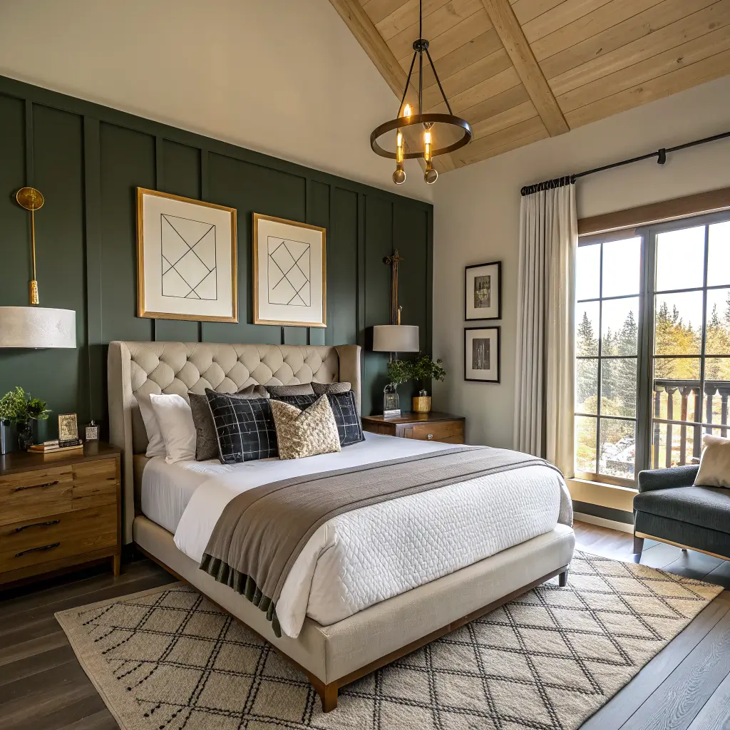 The color palette should feel natural but not dull. Deep forests greens, warm burgundies, and rich navy blues all complement wood tones beautifully. Add cozy textures like faux fur throws and cable knit pillows. The goal? Make guests feel like they’re in a luxury cabin, not camping.