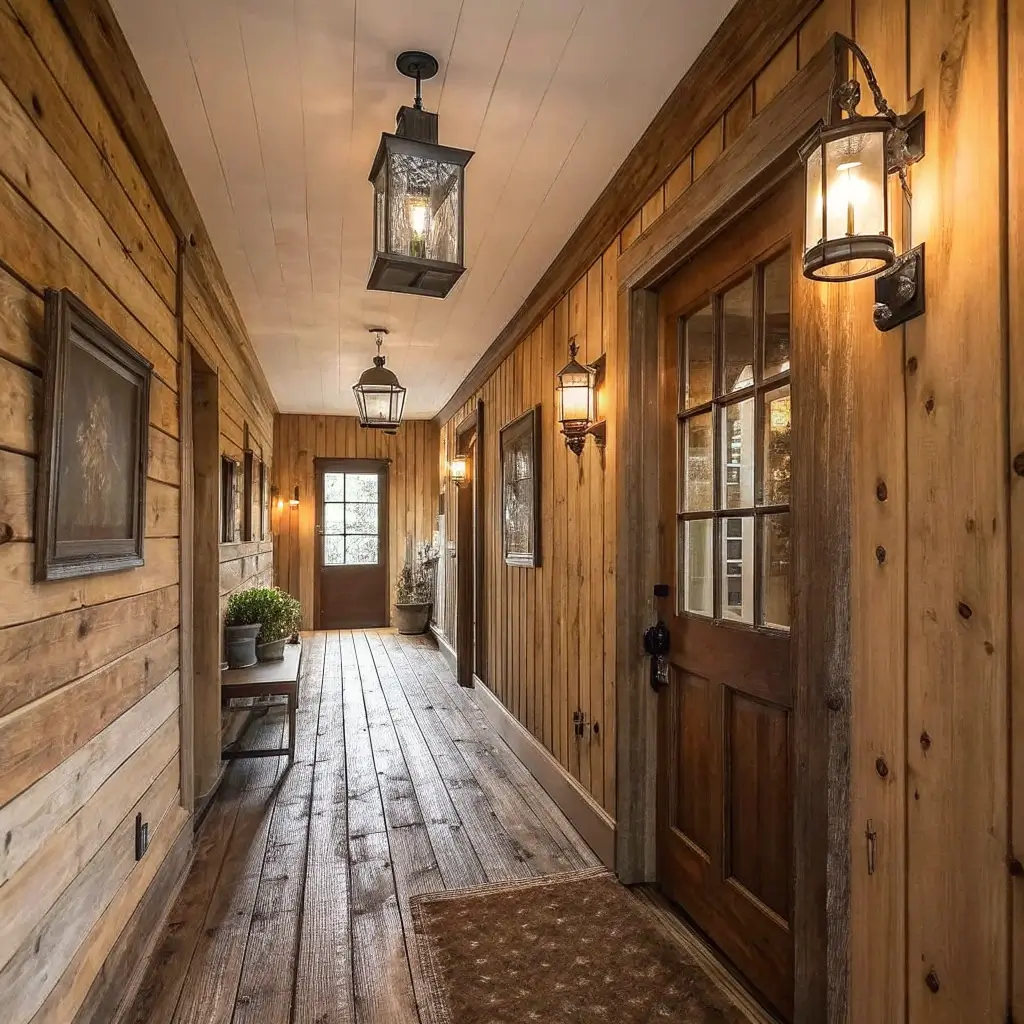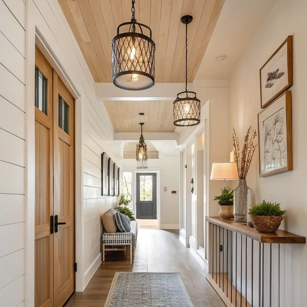 Farmhouse lighting in hallways just makes sense. The style is warm, welcoming, and impossible to mess up. Even if you live in a city apartment, rustic fixtures add that cozy, come-on-in vibe that hallways desperately need.