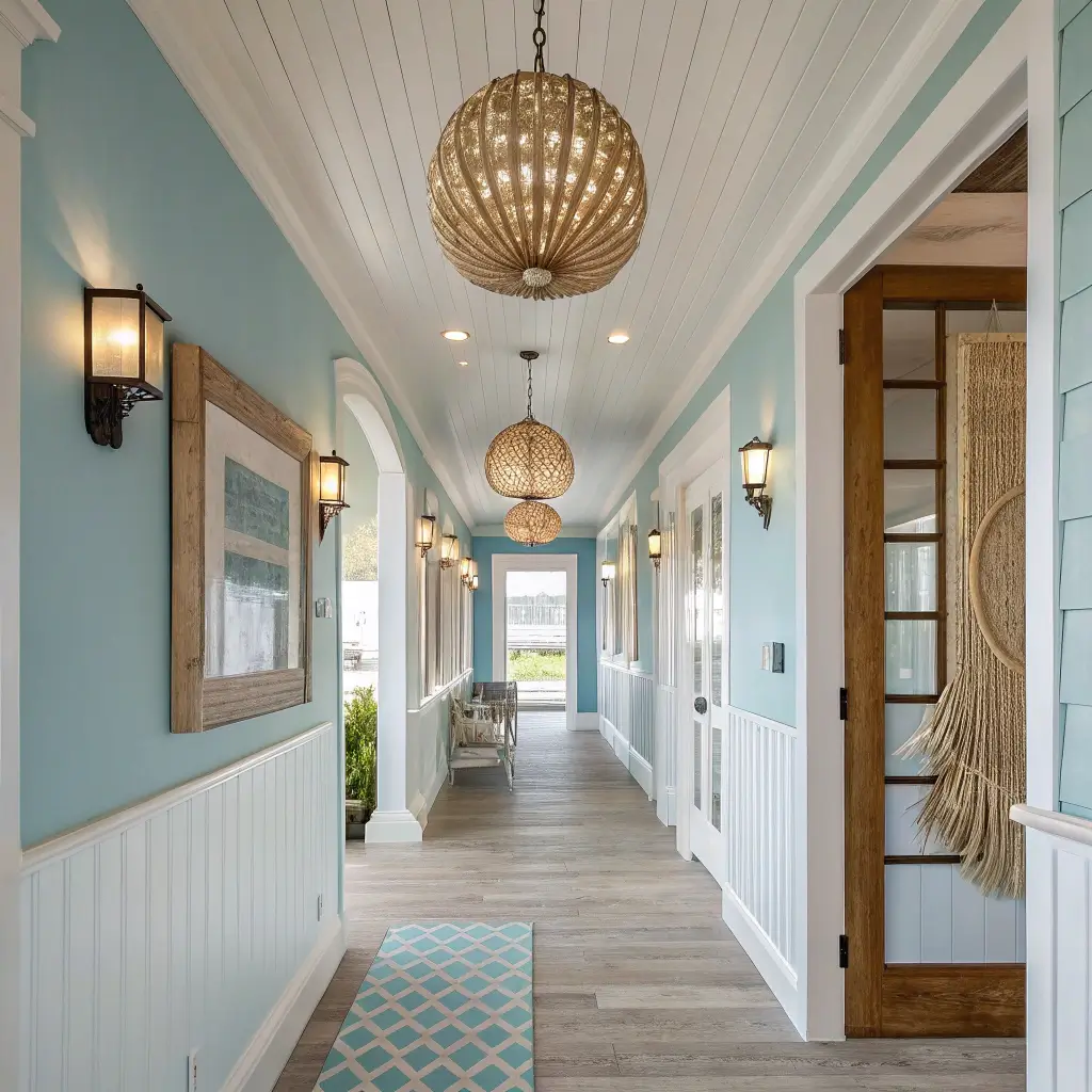 The beauty of coastal style? It works anywhere, not just beach houses. That relaxed, weathered aesthetic makes every hallway feel less uptight.