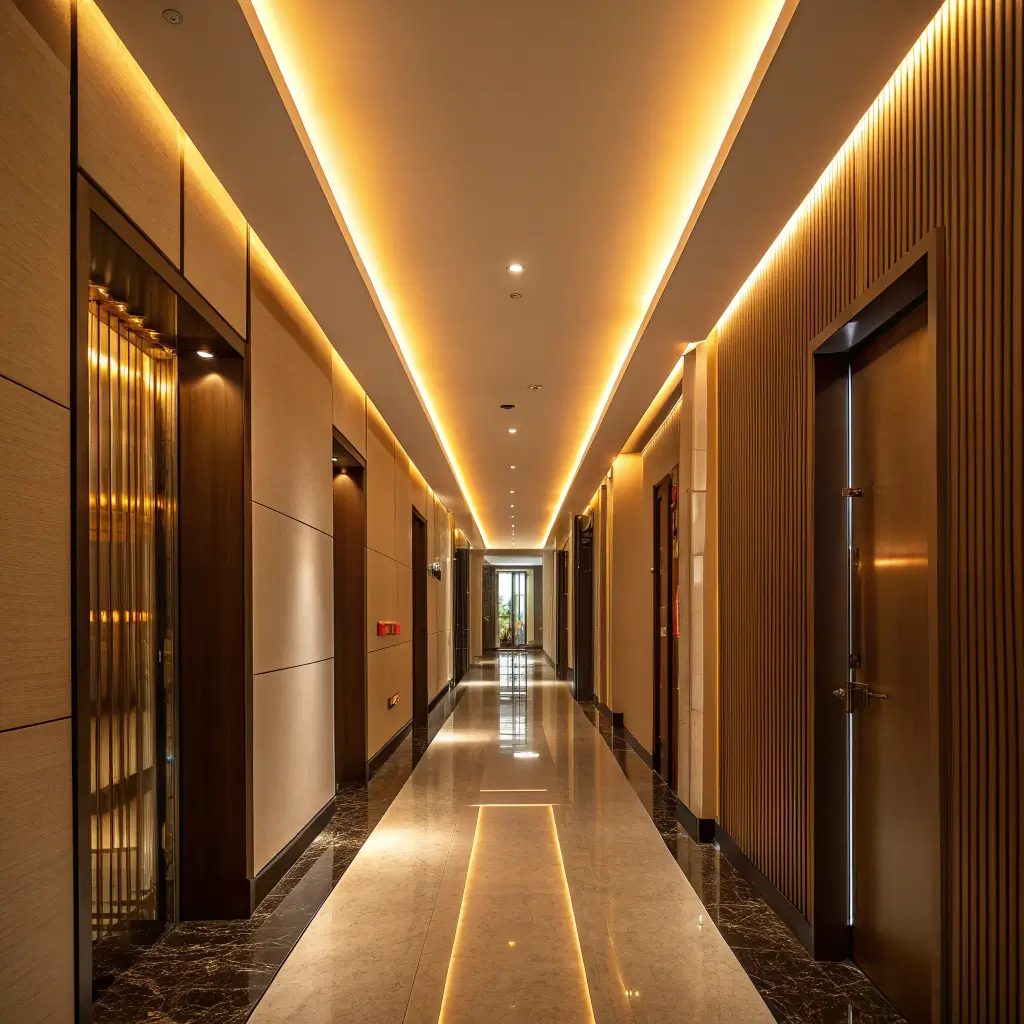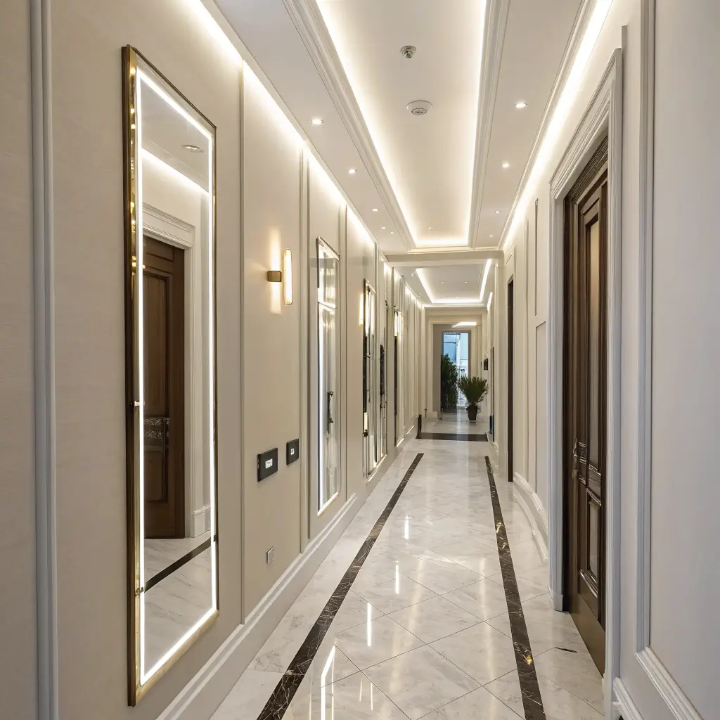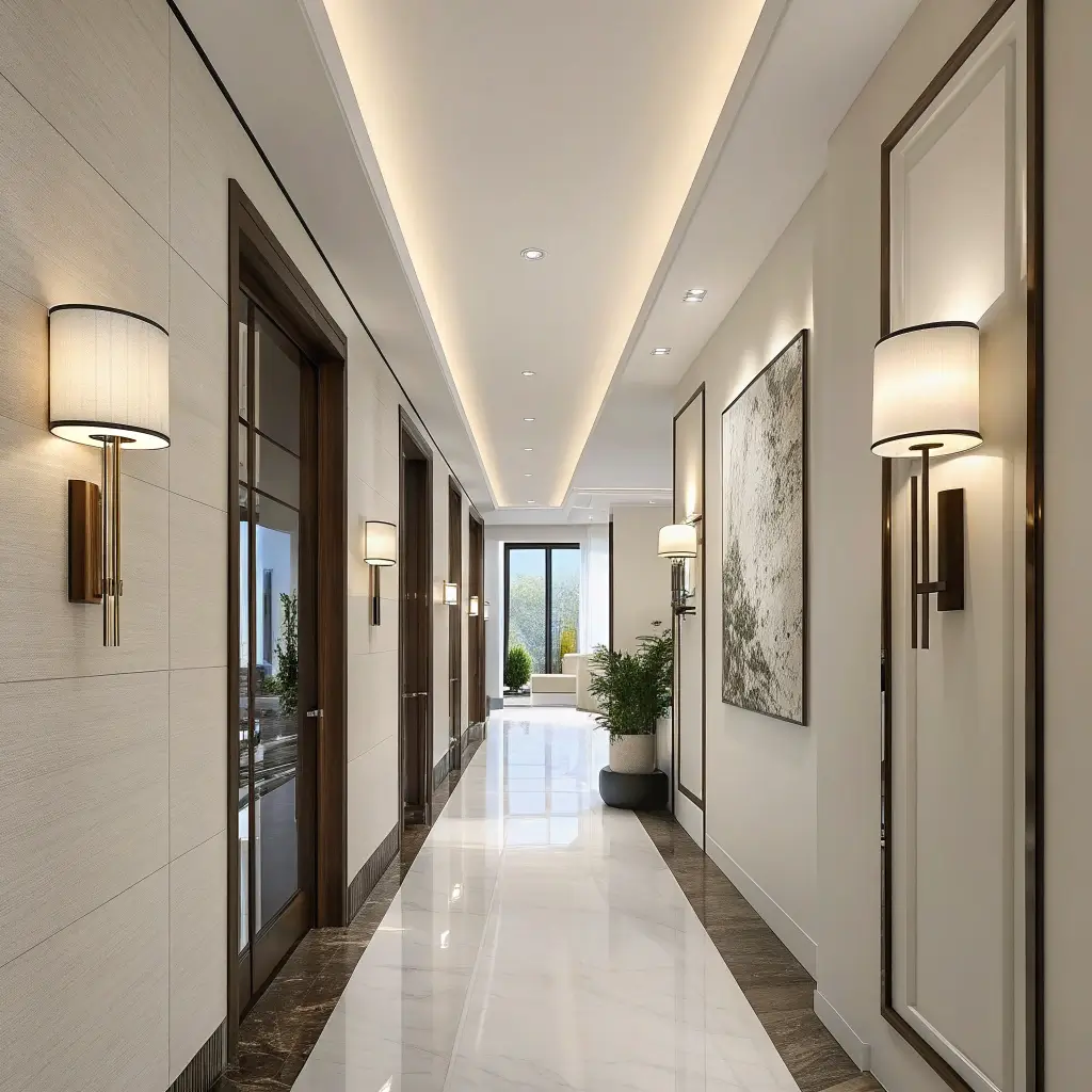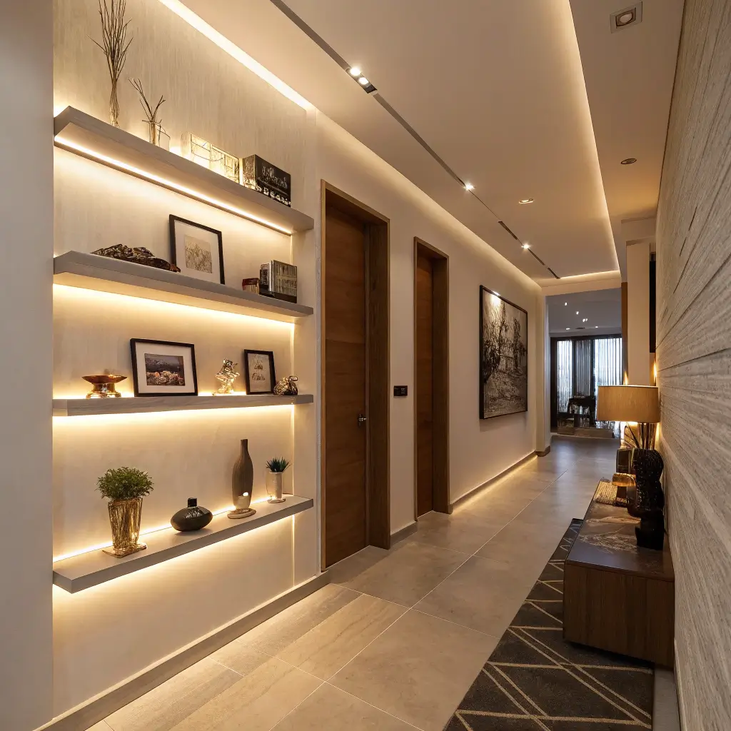Here’s where things get really cozy. Cove lighting creates the most flattering, ambient glow you could ask for in a hallway. It’s indirect, it’s sophisticated, and it makes everyone look good (seriously, it’s like having a permanent Instagram filter for your hallway).