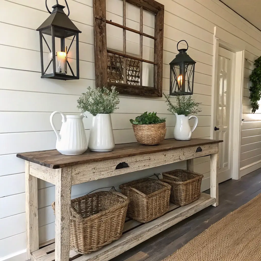 The farmhouse approach lets you incorporate functional items as decor. Those vintage-inspired lanterns? They’re not just pretty – they actually provide ambient lighting. That wooden bowl? Perfect for dropping your sunglasses when you walk in.