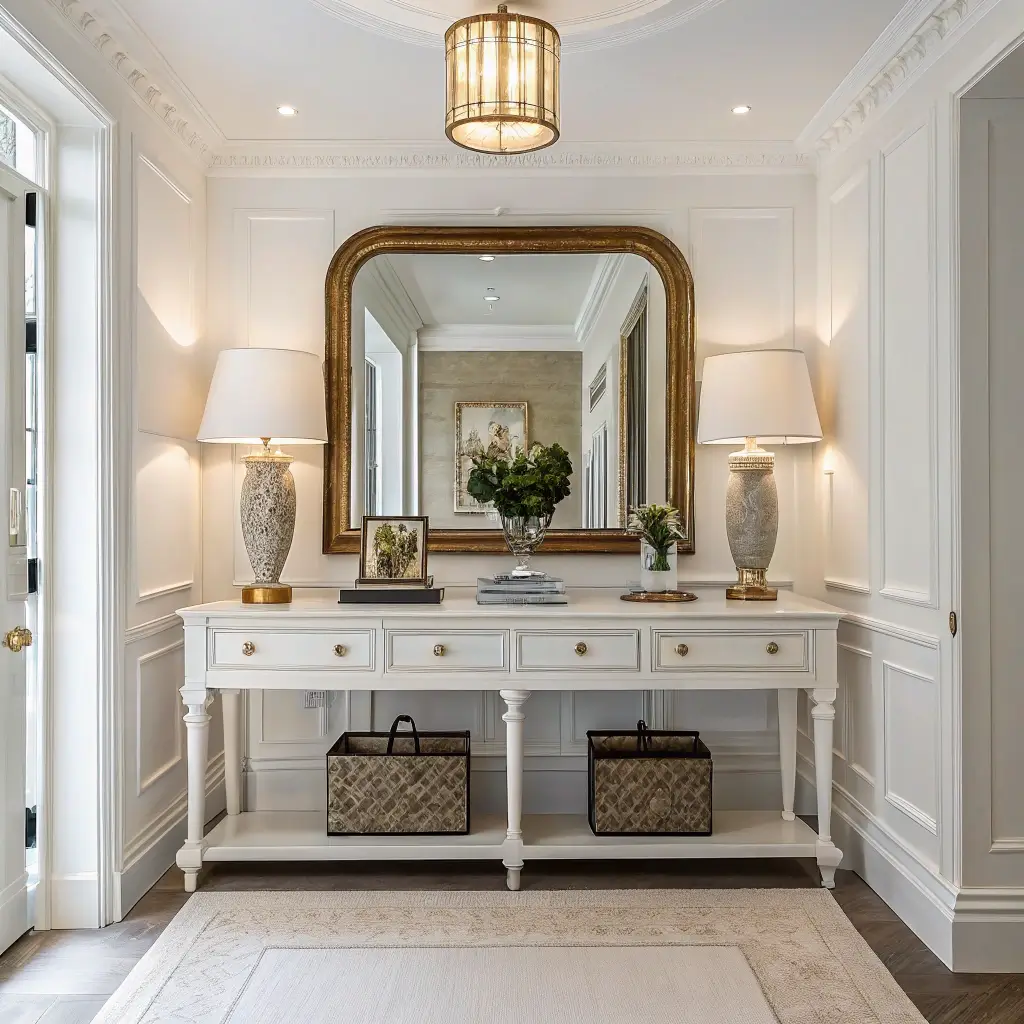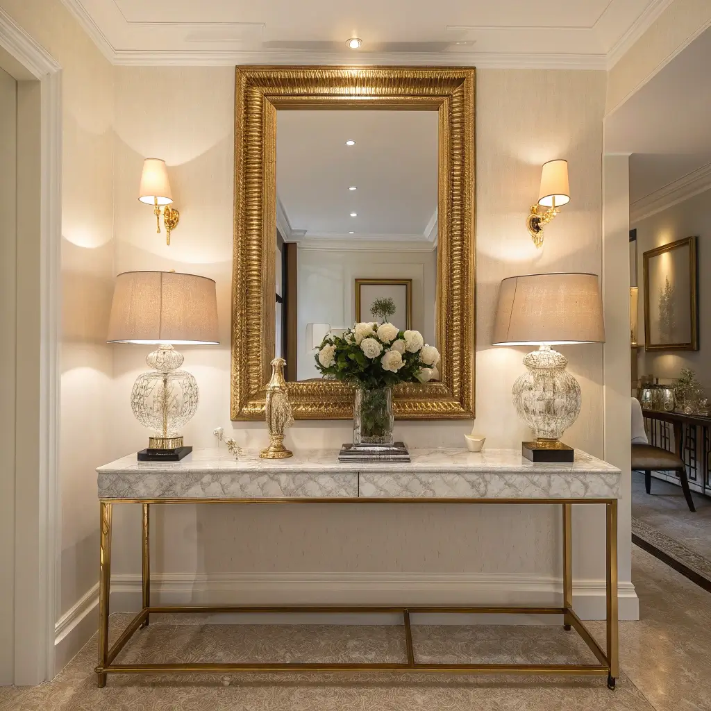 Here’s where functionality meets sophistication. A well-placed mirror and lamp combo transforms your hallway from a pass-through space to an actual destination. Plus, who doesn’t need one last mirror check before heading out?