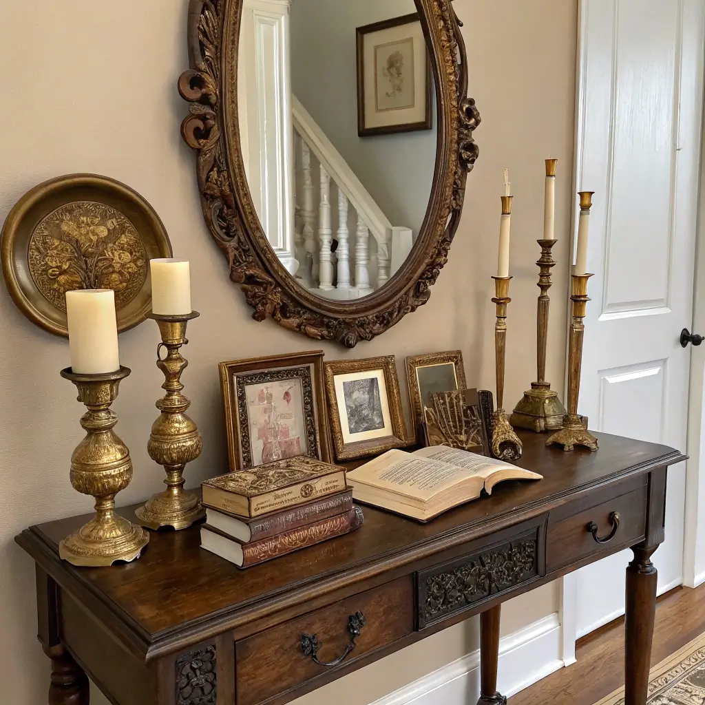 My approach? Choose pieces that could tell a story. That antique silver tray you inherited? Perfect. A vintage brass picture frame with a modern black and white photo? Absolutely. The goal is creating conversation pieces that don’t overwhelm the space.