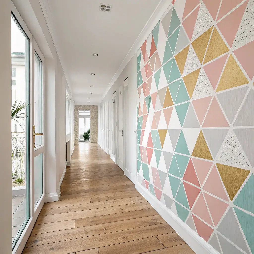 Remember when everyone thought geometric patterns would disappear after 2020? Well, they were wrong—so wrong. Modern geometric wallpaper creates this incredible sense of movement that makes narrow hallways feel dynamic and alive. I recently installed a hexagon pattern in my own hallway, and now guests literally stop mid-step to admire it.