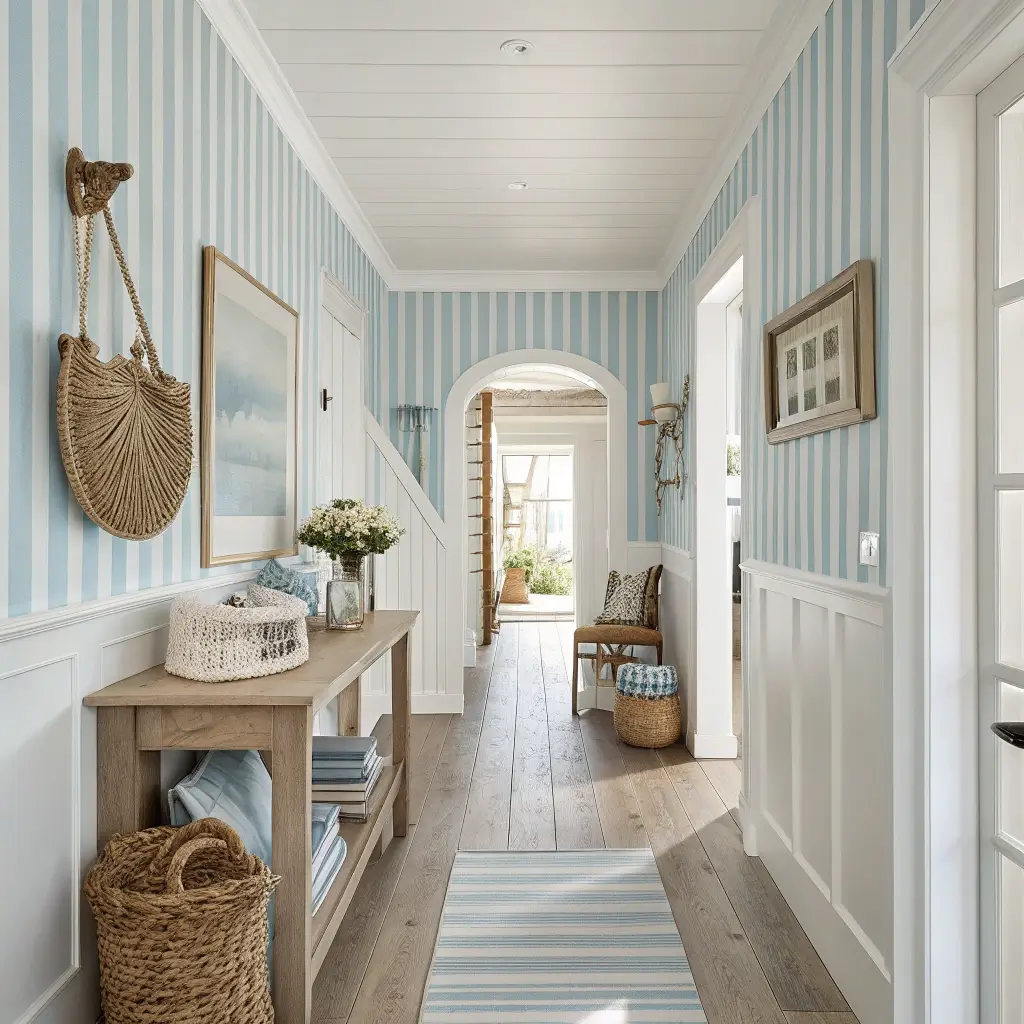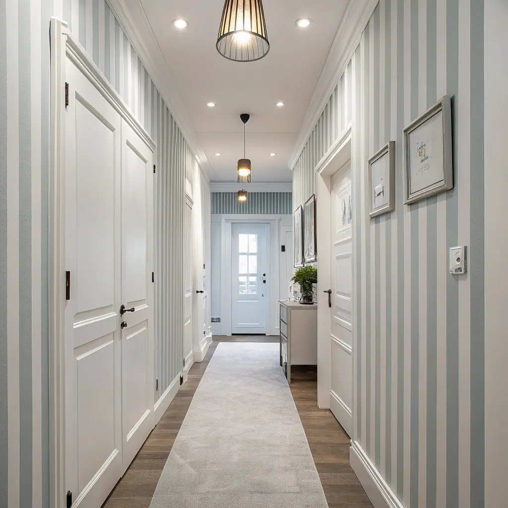 Ever notice how vertical stripes make everything look taller and slimmer? Well, your hallway wants in on that action too. Minimalist stripes offer clean lines without the circus tent vibe—think subtle sophistication rather than carnival chaos.