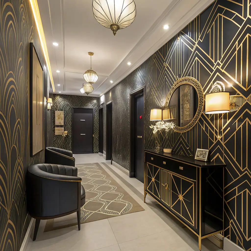 What makes Art Deco perfect for hallways? The patterns naturally create focal points and draw the eye forward. Plus, the metallic elements add light to typically dim corridor spaces. It’s functional AND fabulous—my favorite combination.