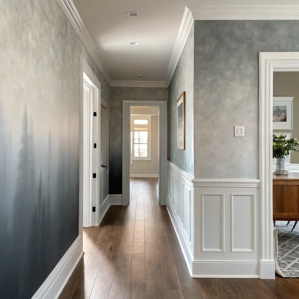 I’ve seen this work brilliantly in hallways with varying light sources. The gradient effect compensates for shadows and bright spots, creating visual balance throughout the space. Plus, grey works with literally every other color—it’s the ultimate team player.
