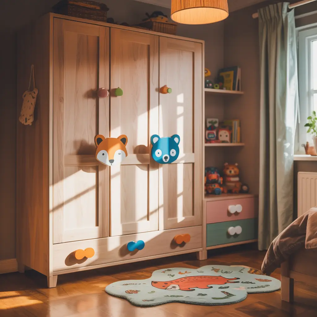 My nephew’s wardrobe looks like a jungle treehouse. The doors feature carved elephants, and monkey-shaped hooks hold his backpack. Does he roar every time he opens it? Obviously.