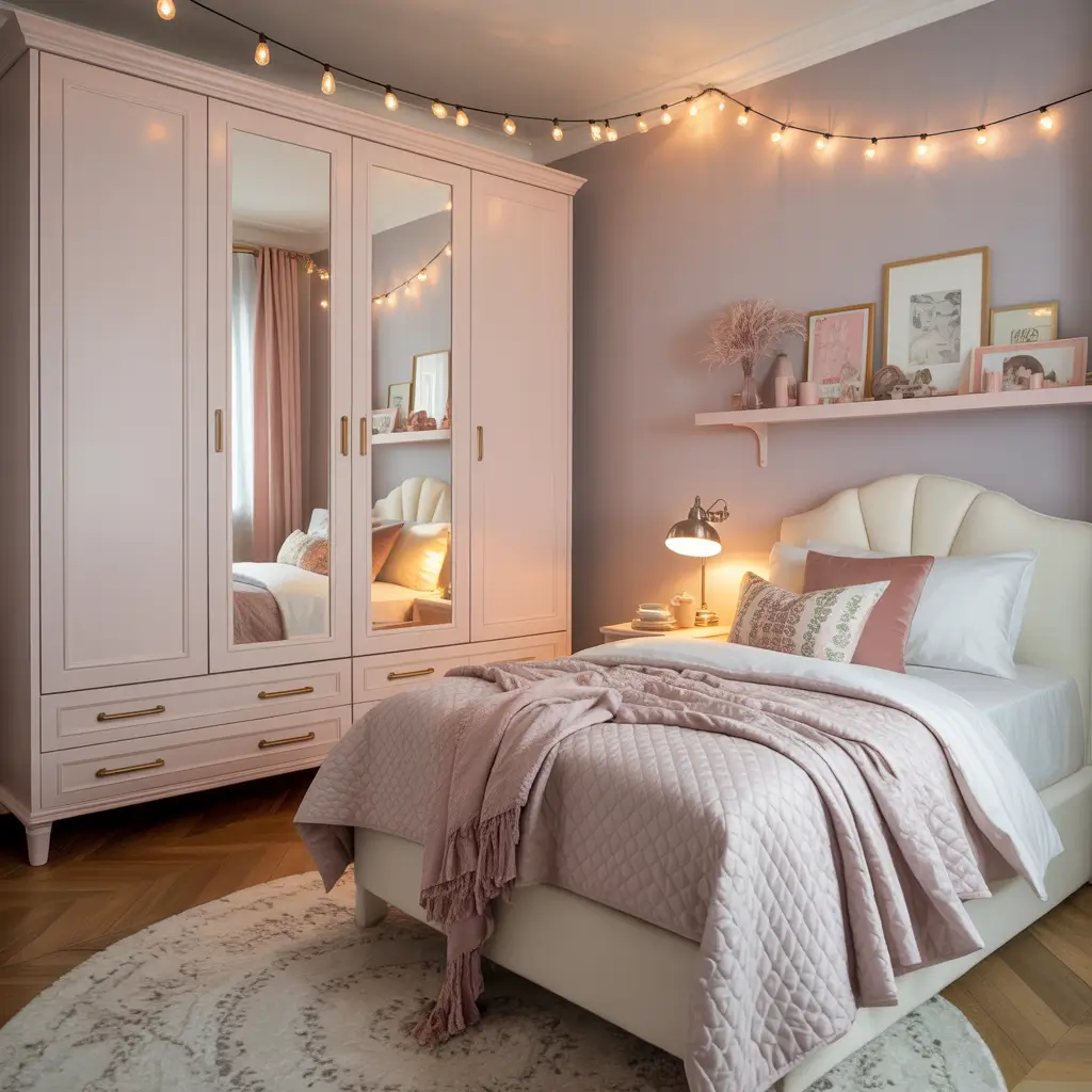 My daughter’s room features a soft sage wardrobe with rose gold handles. It’s feminine without being overwhelming, and she still loves it three years later.